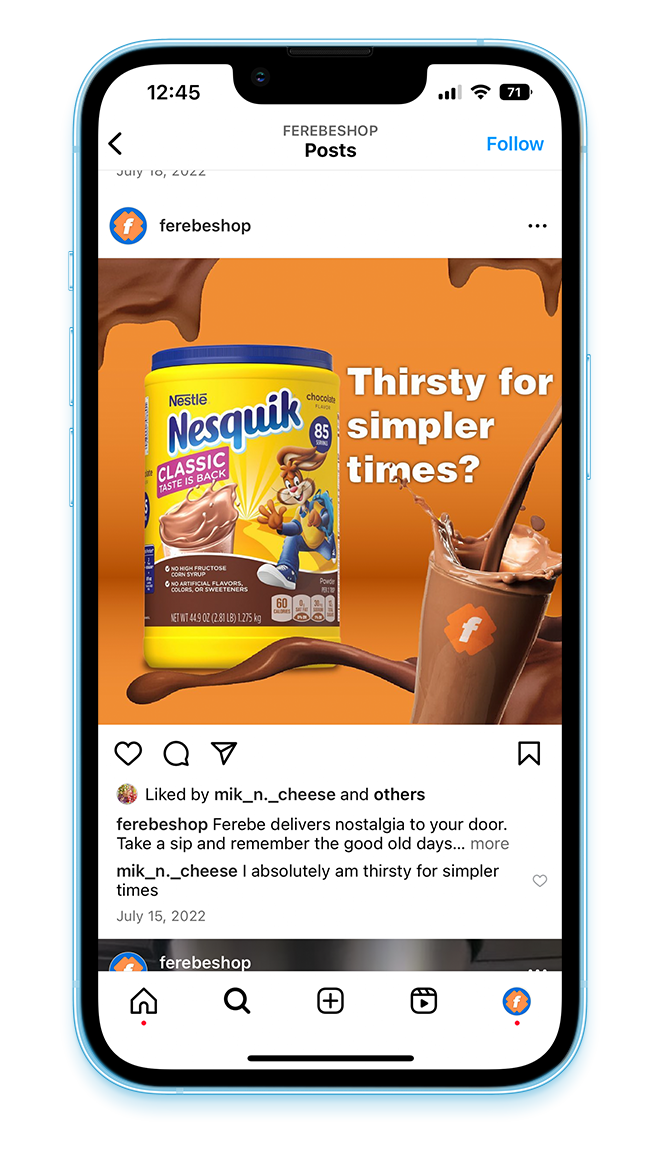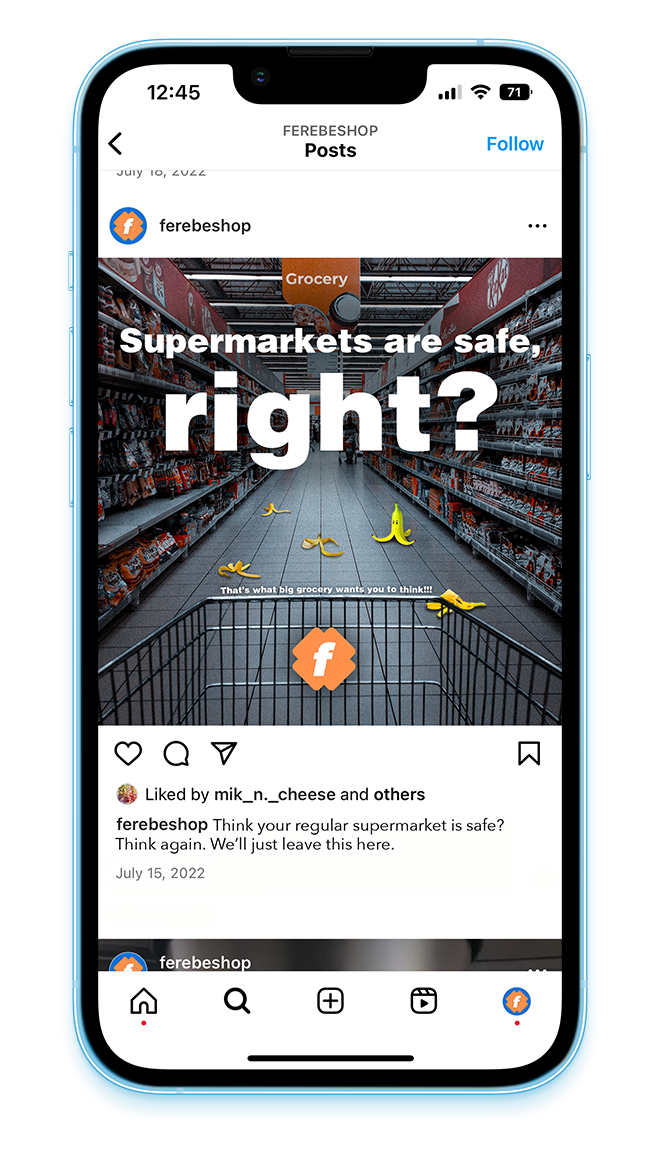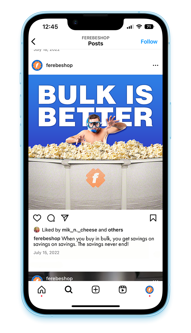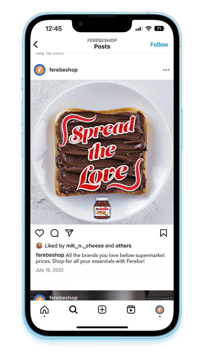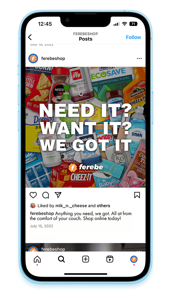 Instagram content for Ferebe, an online grocery store that ships your daily essentials next day for a whole sale price.